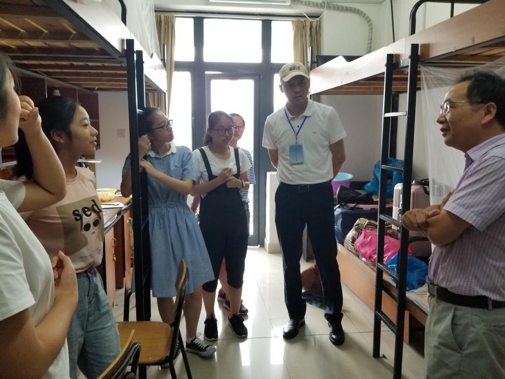 下午四点,公司领导、班主任、辅导员老师走访新生寝室,亲切关怀18级新生入住情况,仔细询问入住寝室条件、入学手续办理等相关情况。