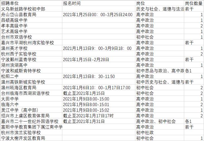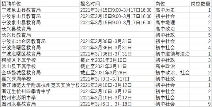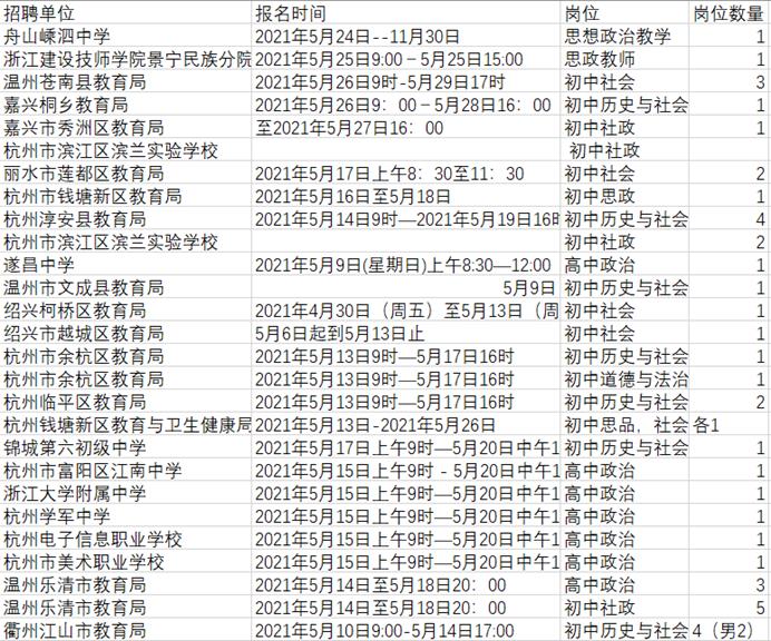 2021年1-5月浙江省教师招聘信息汇总