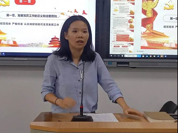 肖老师首先对公司党总支有大概的介绍,让大家对公司党组织有了初步了解。接着,针对新生情况讲述入党程序,并重点强调对党史知识以及党最新理论应该有全面了解,让大家更加了解在当下情况可以为入党做好什么准备。在最后,肖老师教大家学会如何更好使用“学习强国”APP并在此基础上进行了一些小活动。
