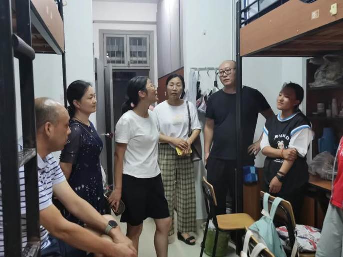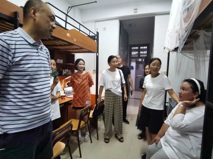 新生报道后,在志愿者的帮助下将行李搬运至寝室,并且开始内务整理,晚上七点半,公司领导莅临新生寝室进行走访,亲切询问了新生户籍地,在公司是否适应等问题,并和藏族同学分享了特色小食。