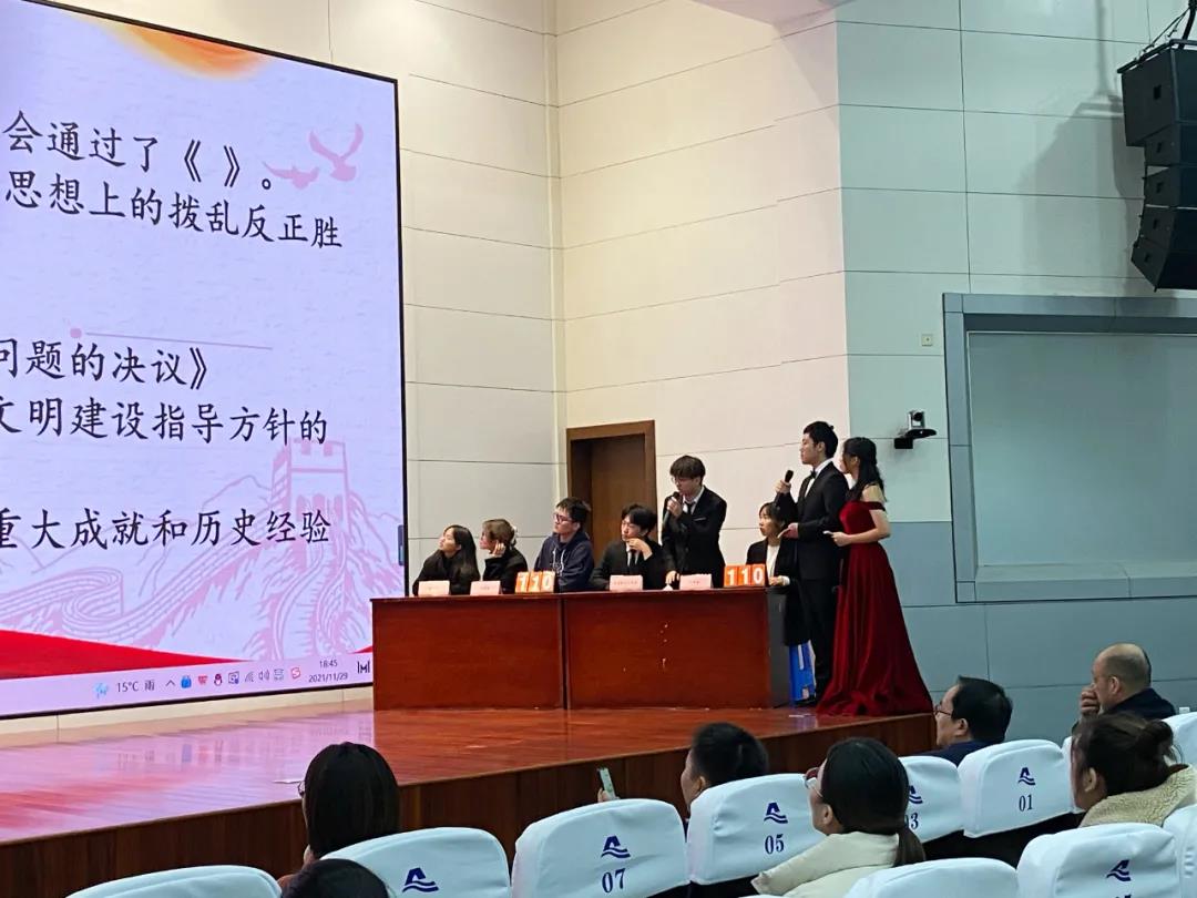 本次大赛的顺利开展,不仅使选手们的能力得到提升,更加重要的是有助于我们深入贯彻党的十九届六中全会精神,对此精神做到真正领会、弄懂学通,最后达到学以致用。