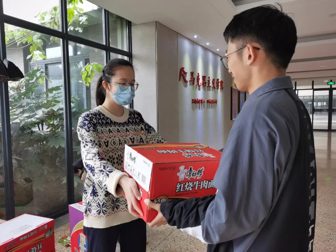 根据疫情防控的要求,公司实行全封闭管理,封住的是疫情的狡猾袭击,封不住的是家长的关心牵挂。12月16日下午,公司每位同学都领到一份暖心物资,丁同学家长向公司学子捐赠了矿泉水、饼干、口罩等抗疫物资30余箱,助力公司打赢这场疫情防控狙击战。此次捐赠,是家校同心抗疫的完美联动,是家长展示社会担当的榜样引领。